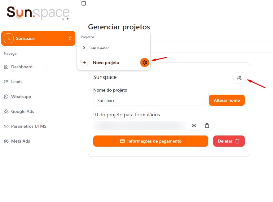 - Administrador: acesso completo à gestão do projeto (exceto deletar projeto ou gerenciar pagamento).