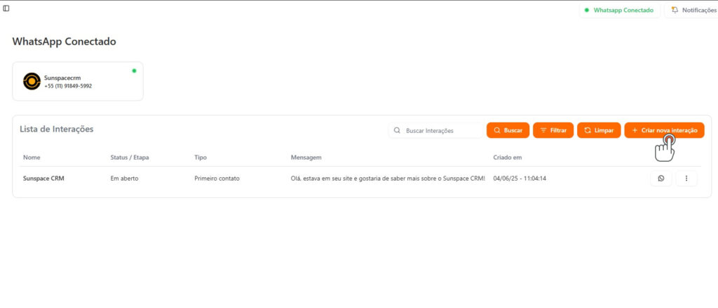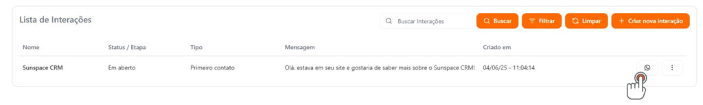 1 – Clique no botão do WhatsApp na linha da interação.