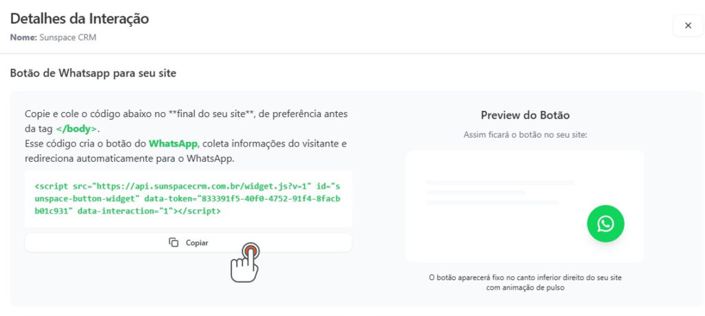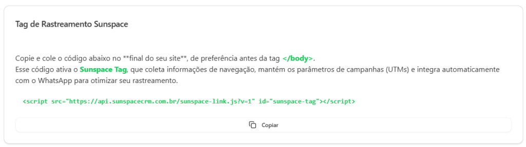 ⚠️ Importante: Certifique-se de que a tag do Sunspace está no seu site para que o rastreio funcione corretamente.